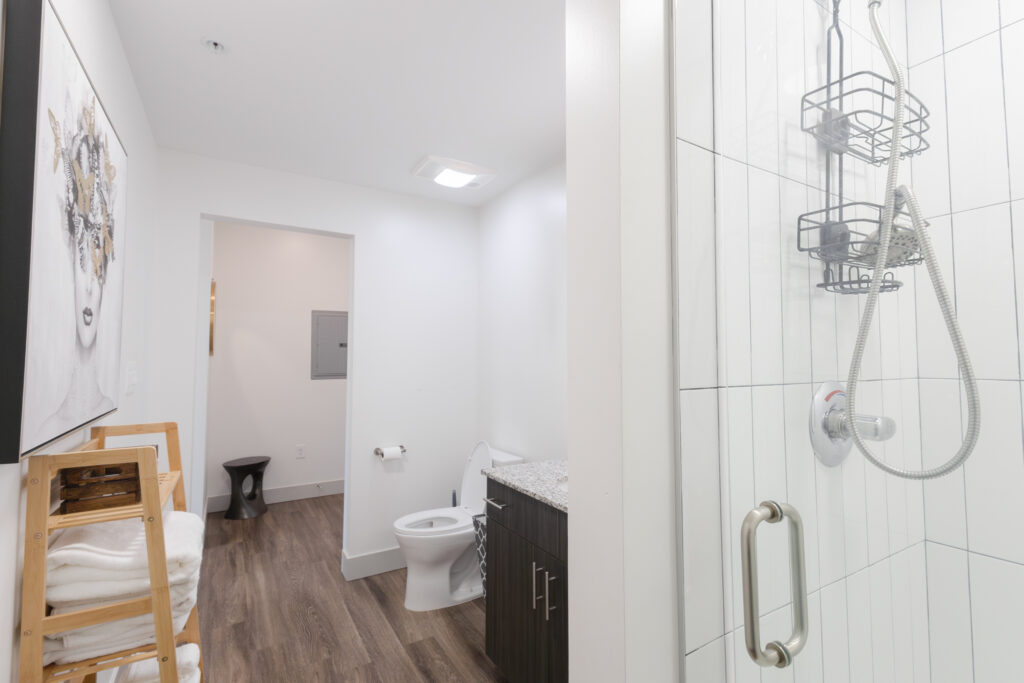 Hard wood Flooring and Carpeted Bathrooms